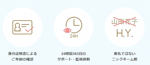身元確認はあるもののアプリ内ではニックネームなので実名を使う必要はありません。