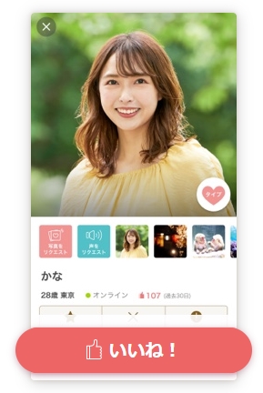 プロフィールや条件が設定できたら、マッチングを始めます。相手のプロフィールを見て「いいね!」を送信し、お互いに「いいね!」を送り合った場合にはマッチングが成立します。マッチングした相手とは、アプリ内でメッセージのやりとりができます。